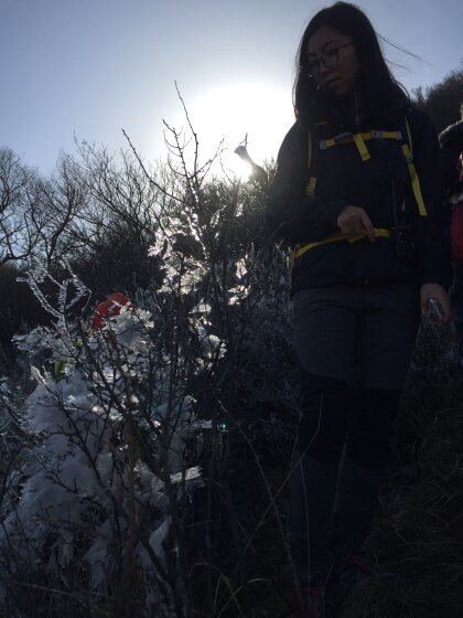 燕羽山徒步,许多人都在心里默默期待一场艳遇。正如大家心里所想,艳遇是有的,而那另一半,就是如桃花般美艳的冰花。