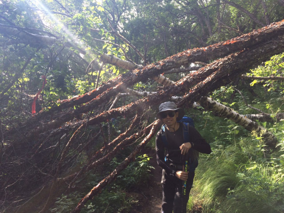 渐入阴凉,抬眼看已经到了桦树林。驼梁的桦树以白桦居多,但我觉得满眼看到的都是红桦。听说用红桦树皮写成情书送给心爱的人,就会心想事成哦。