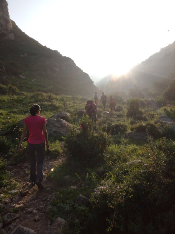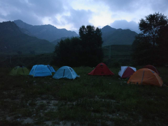 第二天早晨被四点一刻的闹钟闹醒后,竟然磨蹭到五点半才把帐篷收好。这也真是众多次扎营活动中第一次早晨赖着不想起床呢,是因为经历了北京的酷暑觉得山里的温度太舒适吗?并且,一摸脸,皮肤也是好的不行。